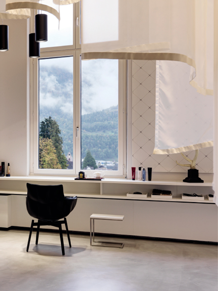 Mit viel Liebe zum Detail entstand ein sehr eleganter und luxuriöser Salon der Extraklasse. In der einzigartigen Bergwelt um Flums schlagen wir bewusst eine Brücke zwischen Klassik und Moderne. Unsere Haarpflegezone wurde mit den neusten Komfort-Massageliegen ausgestattet und bietet Ihnen Entspannung und Wohlbefinden. Während sie von uns verwöhnt werden, geniessen sie in grosszügig gestalteter Umgebung die Aussicht auf die umliegende Bergwelt.